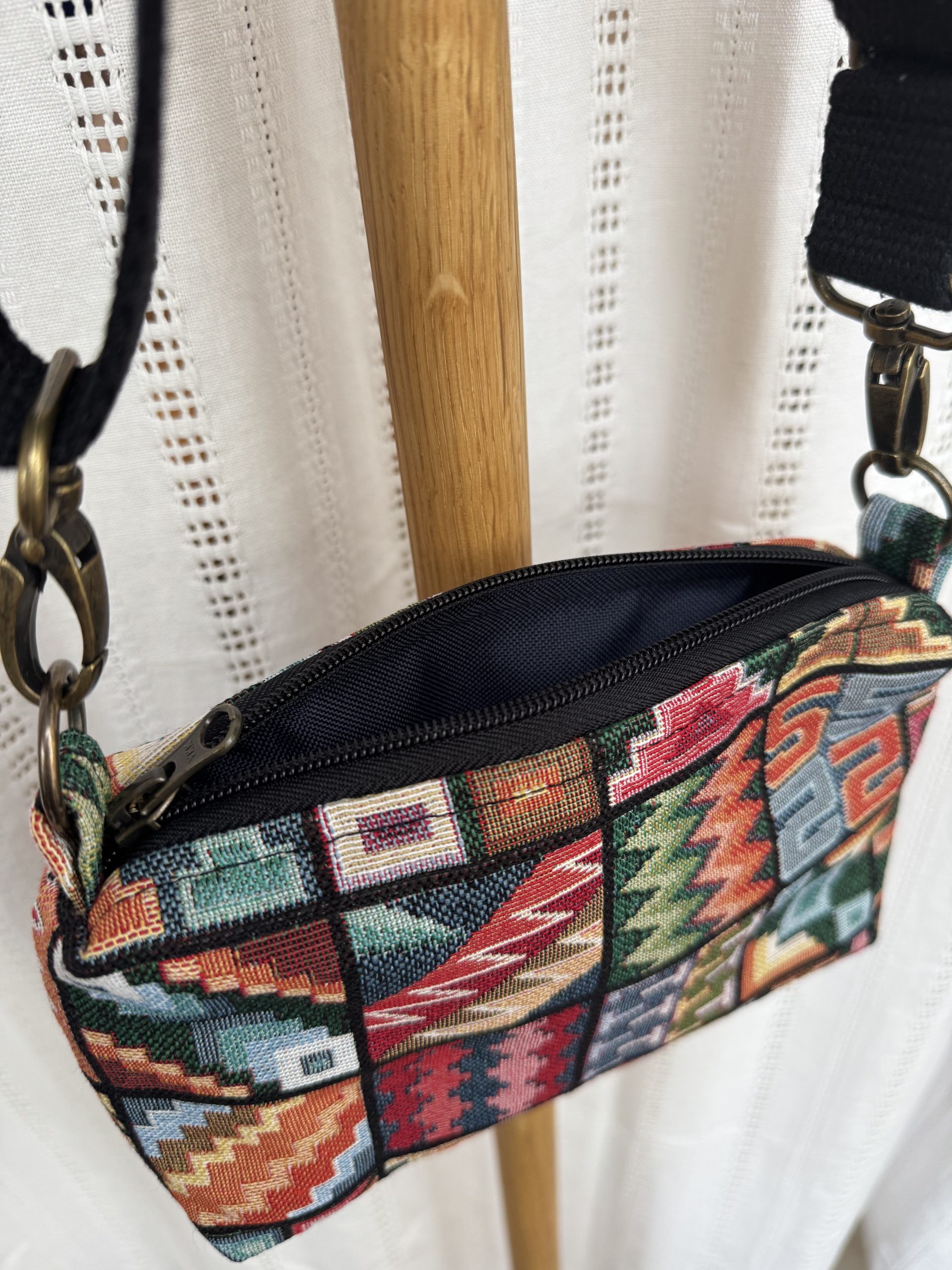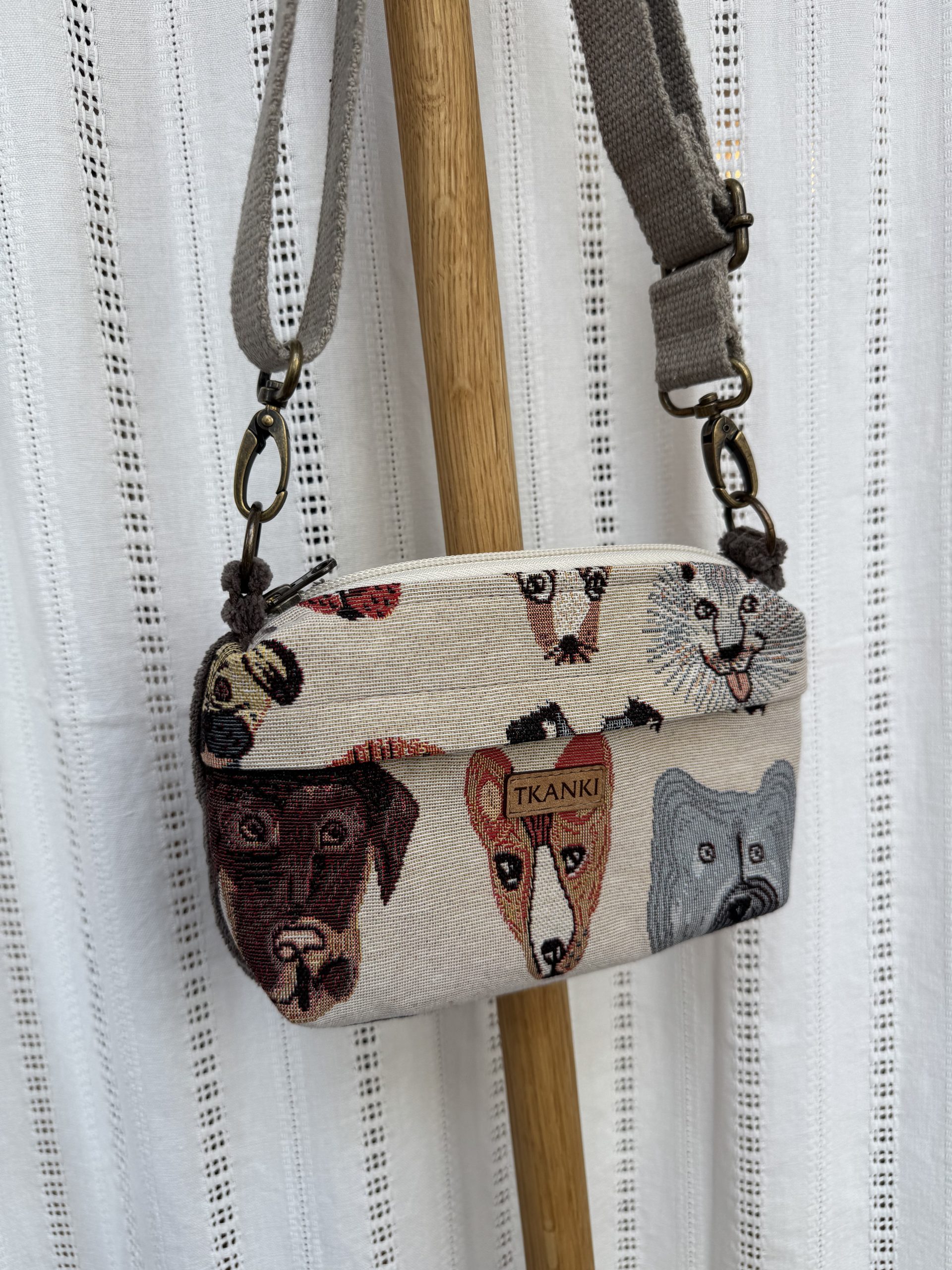 Nerka-torebka uszyta tylko w jednym egzemplarzu. Wykończona podszewką, ma kieszeń z przodu zapinaną na suwak ukryty pod patką oraz kieszeń główną. Uszyta ze ścinków tkanin tapicerskich. Nerka pięknie się układa niezależnie od tego, czy w środku jest mniej czy więcej rzeczy. Z przodu naszyta subtelna metka.