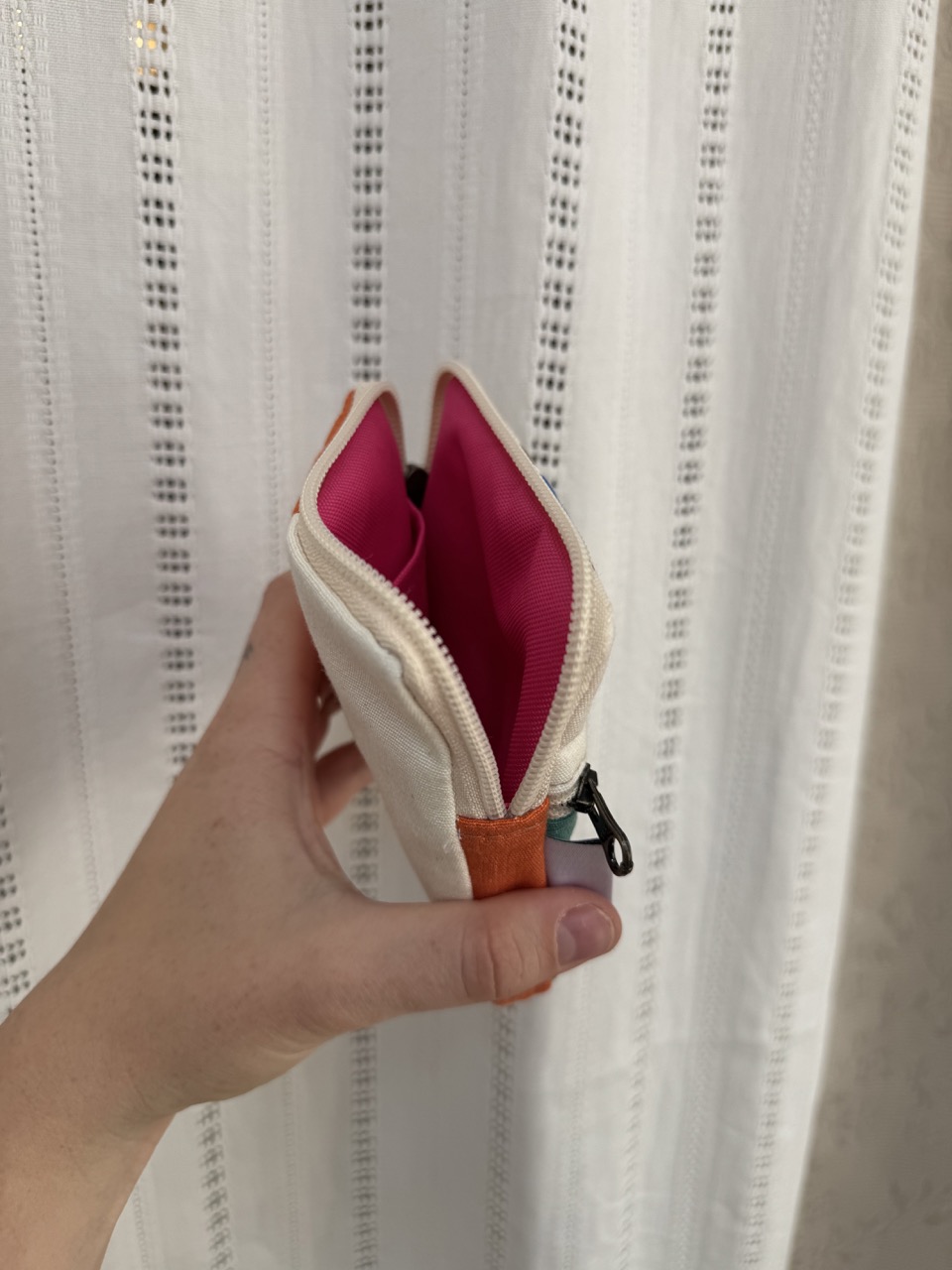 Portfel uszyty w duchu idei zero warte z niepotrzebnych materiałów. Ma dwie kieszenie zapinane na suwak i jedną usztywnianą przegródkę w środku na karty. Wykończony bawełnianą podszewką. Portfelik uszyty w jednym egzemplarzu, od początku od końca powstawał w naszej pracowni.