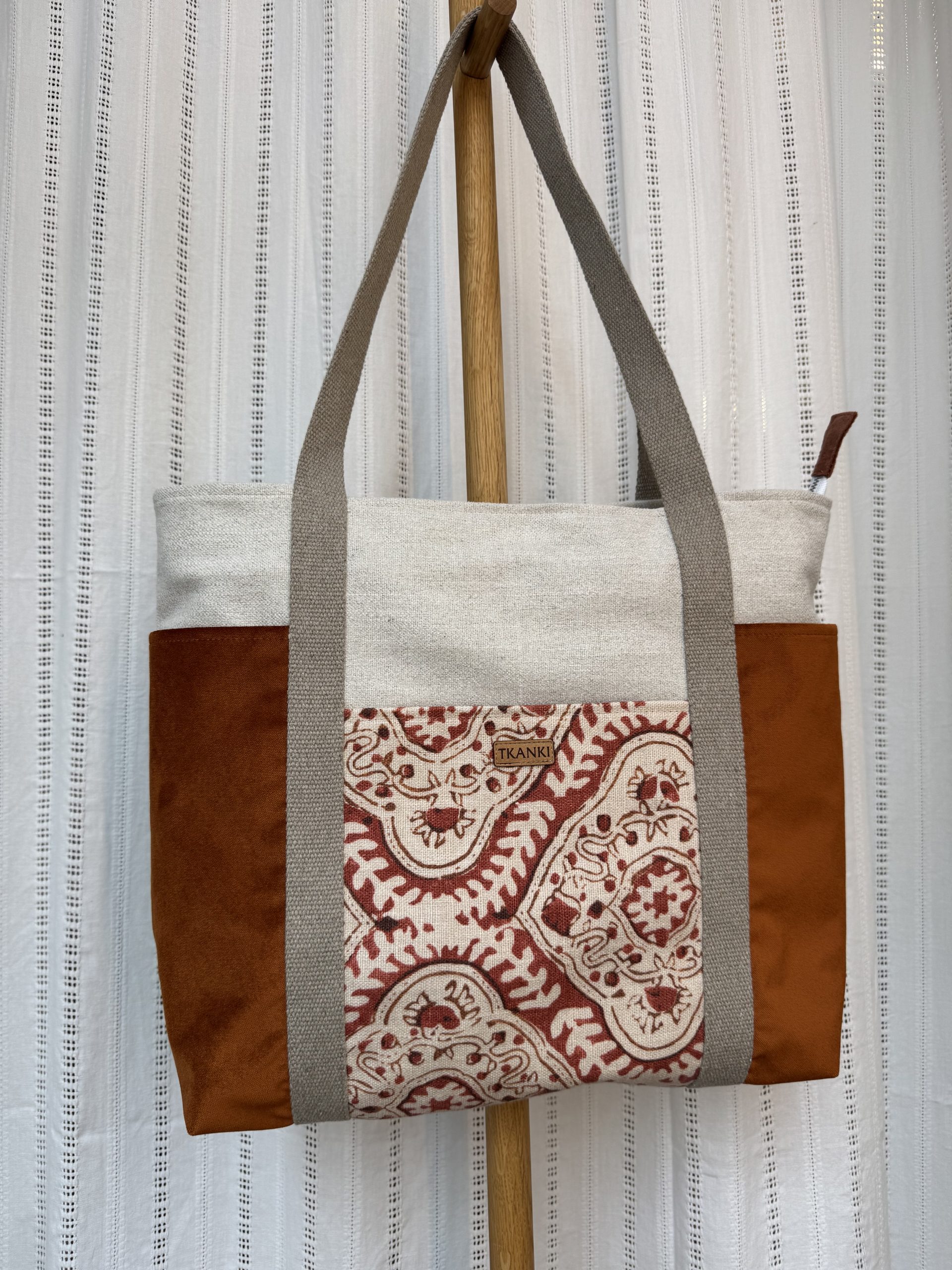Zapoznaj się z zasadami, jak dbać o produkt. Każda torba jest uszyta ręcznie z tkanin z wtórnego obiegu lub ścinków od większych fabryk/próbników obiciowych.